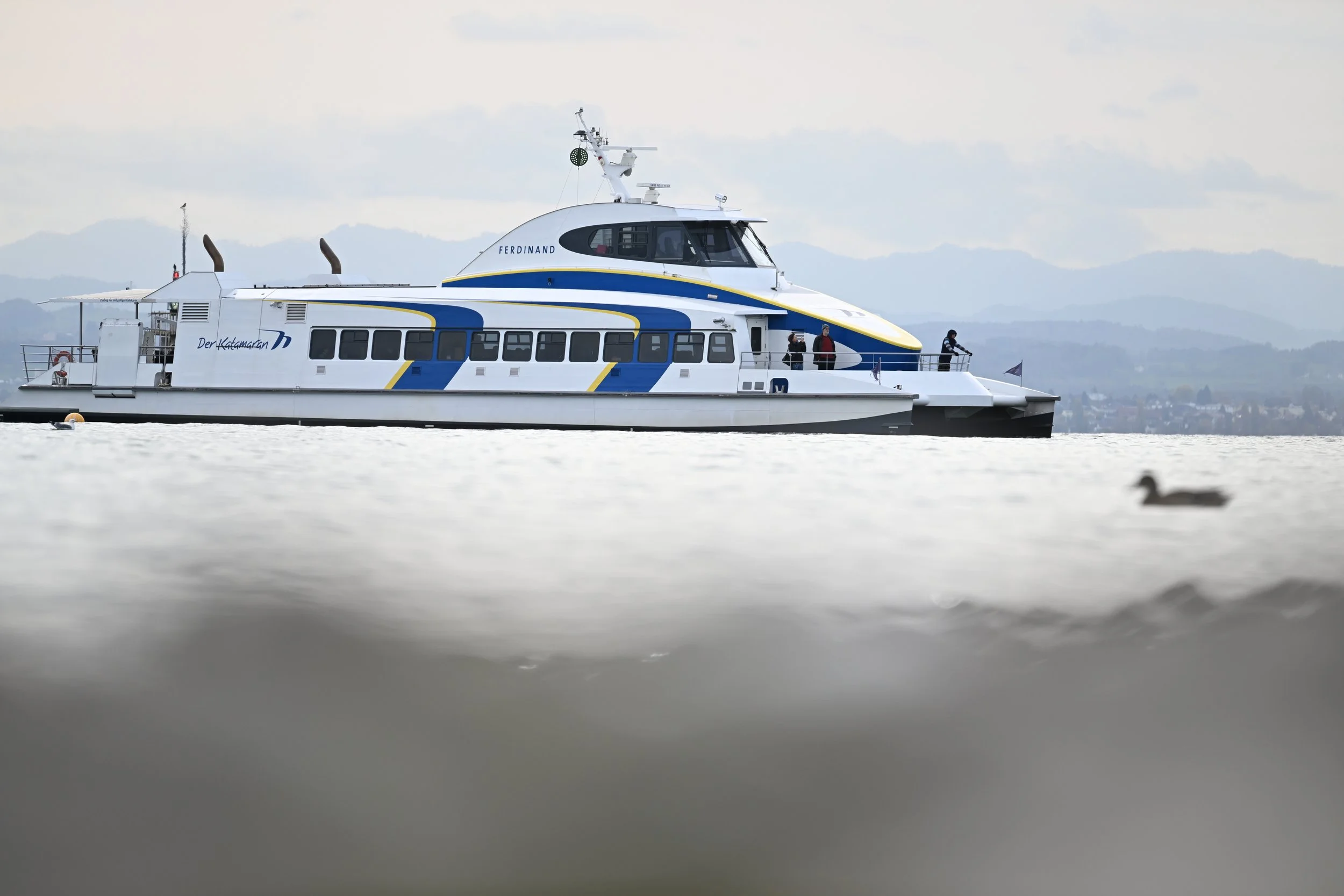 Mit einer Kapazität von 182 Personen und in nur 52 Minuten Fahrzeit verbindet diese Schifffahrtslinie die beiden Bodenseemetropolen Friedrichshafen und Konstanz. -